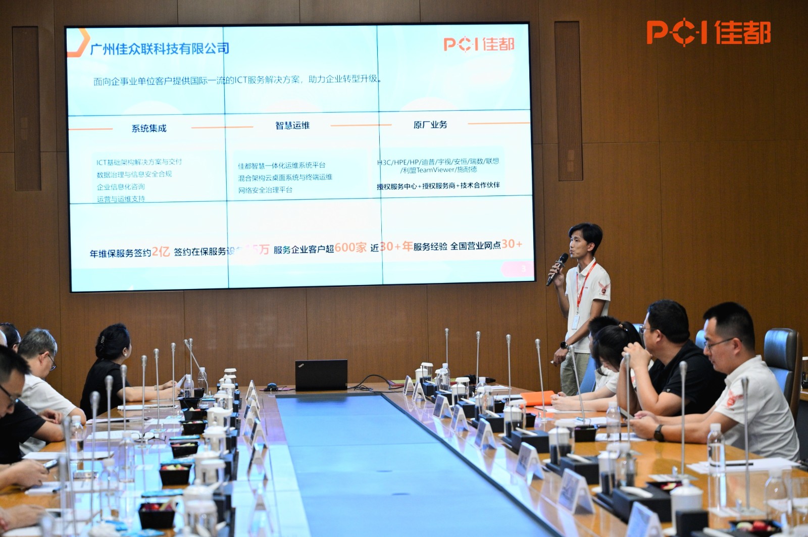 接下来,佳众联售前经理曾志辉详细地介绍了佳都科技在ICT服务业务的能力和案例。佳众联作为佳都科技的重要业务板块支撑主体之一,拥有强大的技术实力和丰富的服务经验,为政府和企业客户提供从咨询规划、行业解决方案、运维服务到运营的全栈式ICT产品和技术服务。无论是在智慧城市治理领域,还是企业数字化升级中,佳众联凭借一系列领先的技术产品和解决方案以及三十年的ICT行业经验,助力客户实现高效、安全的数字化转型。